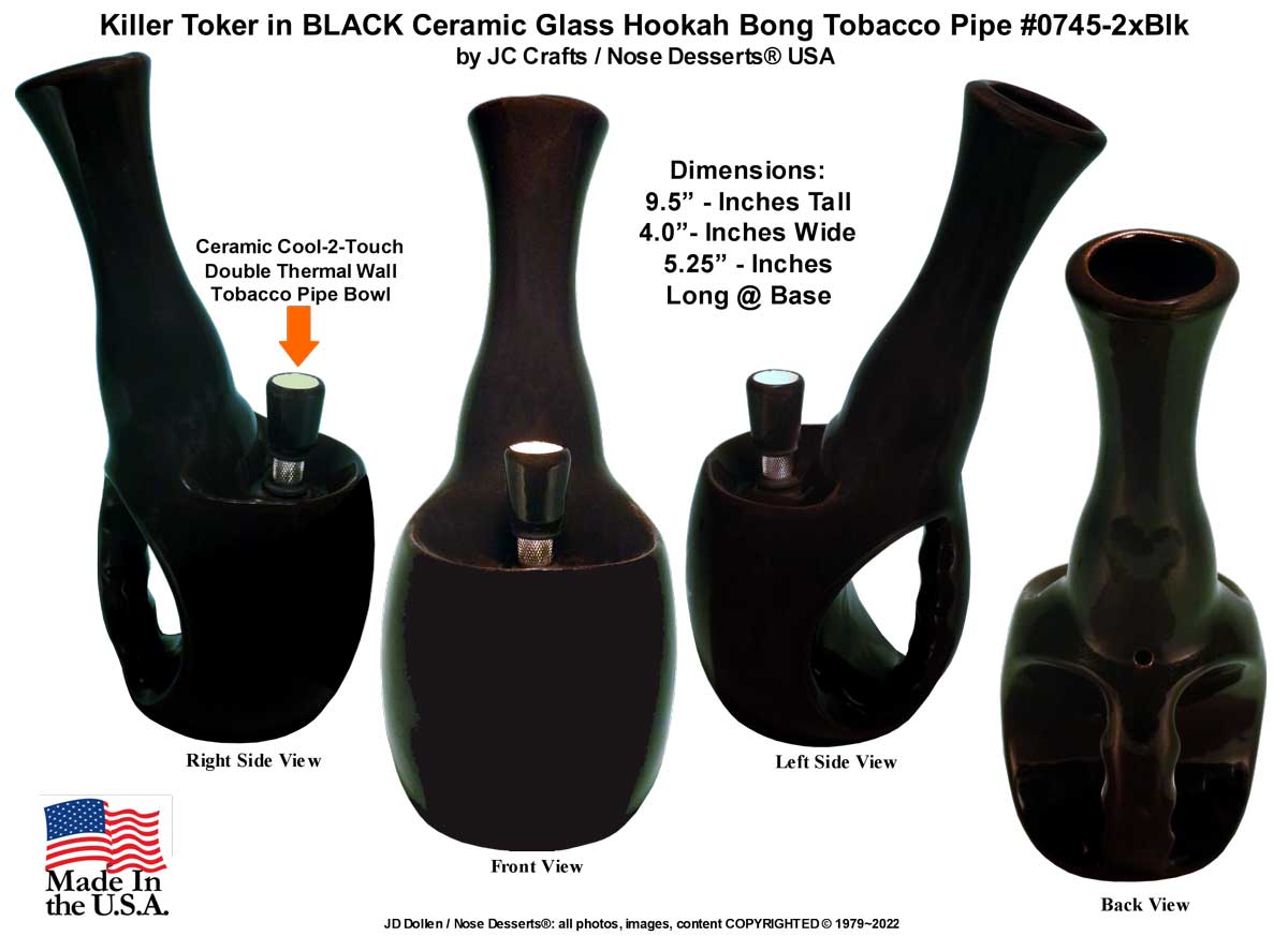 This Herb Stash Midnight BLUE Killer Toker with built in Handle #0745-blu-gl Ceramic Glass Classic Vintage Style Hookah Type - Tobacco Pipe by Nose Desserts® brand is Hand-Crafted from USA produced Ceramic Clay and Glazes which will withstand extreme high heat, is completely hollow, and will not get hot to the touch. It is very easy to clean, wash the glazed surfaces with just mild soap and water, and the interior by simply boiling in water or ream out with standard pipe cleaners and – or common isopropyl alcohol.