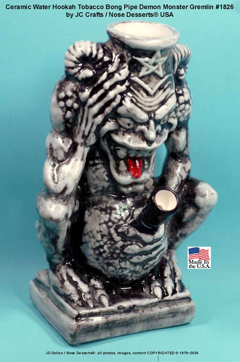 Classic Vintage Reproduction of Rumph Style, Demon Monster Fantasy Gremlin, Ceramic Glass Water Hookah Tobacco Pipe #1826SE - FREE SHIPPING!